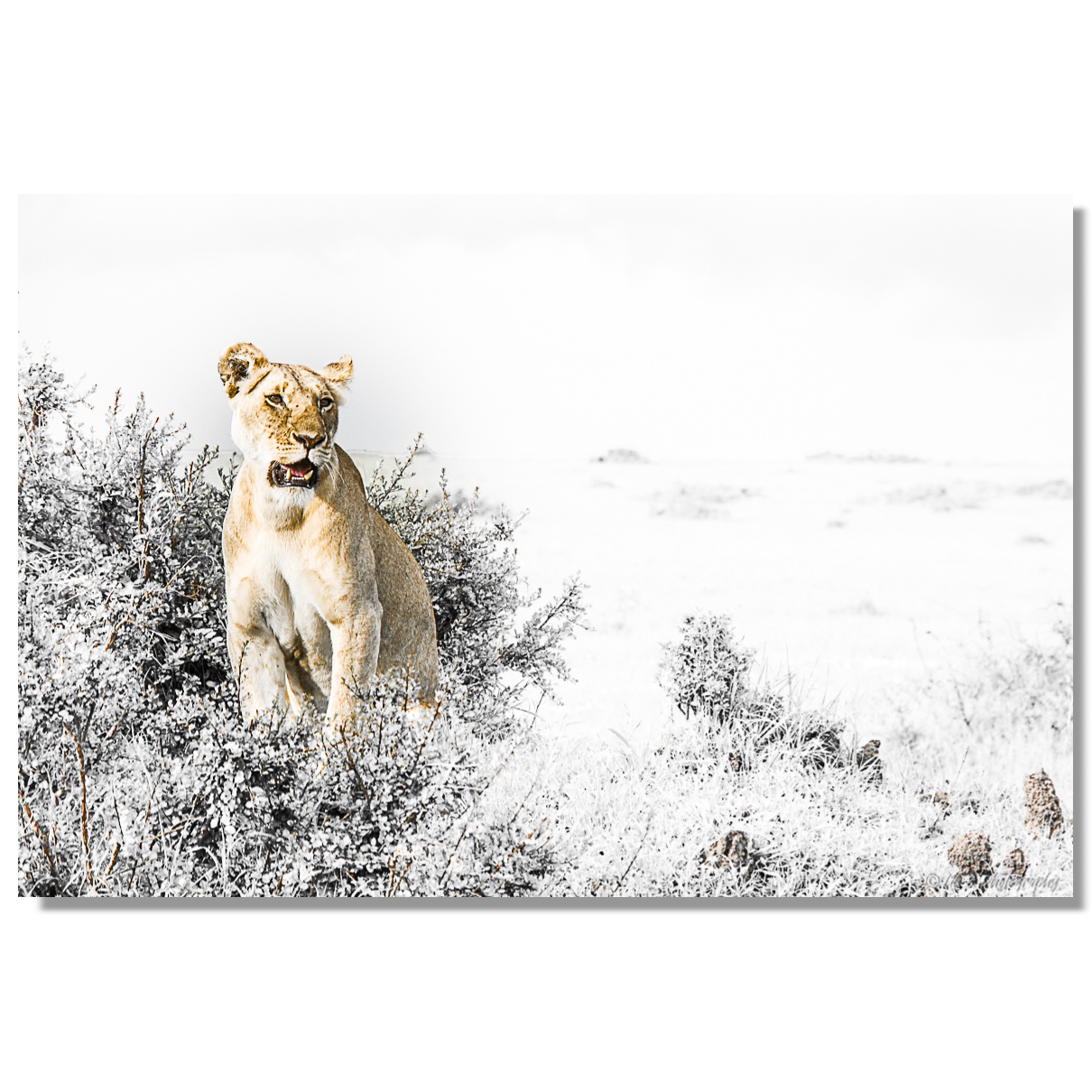 Verleihen Sie Ihrem Zuhause das gewisse Etwas mit meinem Wandbild Löwin, Kenia, Querformat im Seitenverhältnis 3:2.